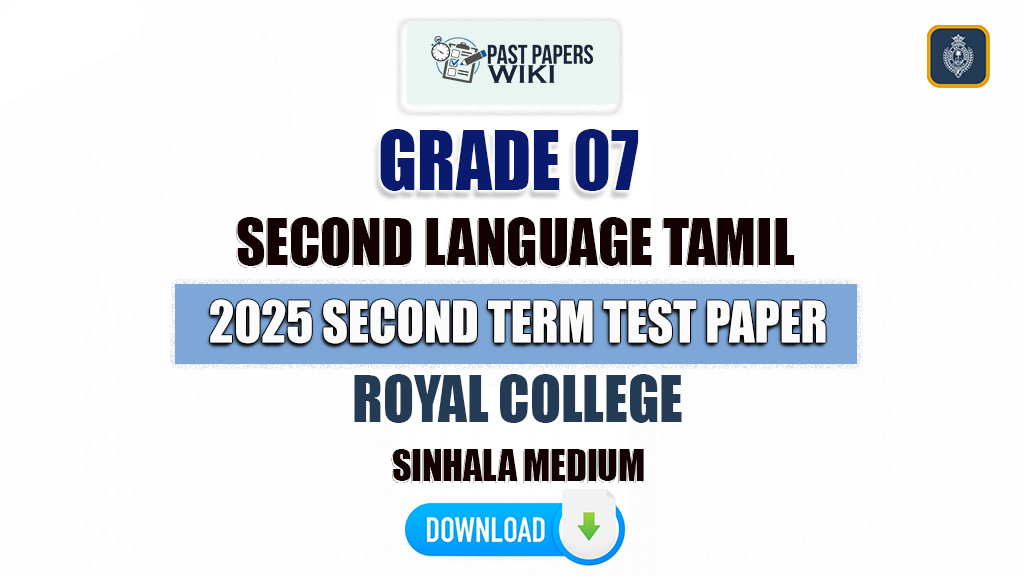 Download Colombo Royal College Grade 07 Second term test Second Language Tamil paper 2025 in Sinhala medium. Royal College Grade 07 Sinhala medium papers are available in PDF format. We have added many previous Royal College Term Test Papers and answers to this website for you. You can download it using the links given below.