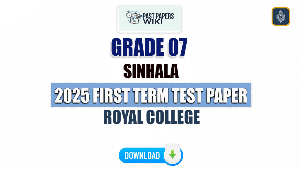Download Colombo Royal College Grade 07 First term test Sinhala paper 2025. Royal College Grade 07 papers are available in PDF format. We have added many previous Royal College Term Test Papers and answers to this website for you. You can download it using the links given below.