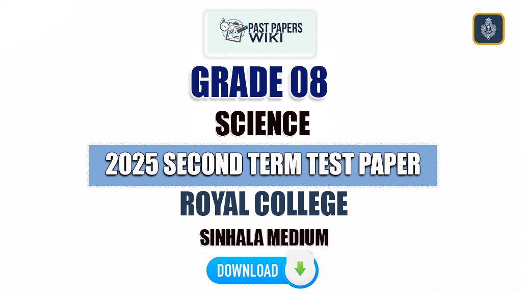 Download Colombo Royal College Grade 08 Second term test Science paper 2025 in Sinhala medium. Royal College Grade 10 Sinhala medium papers are available in PDF format. We have added many previous Royal College Term Test Papers and answers to this website for you. You can download it using the links given below.