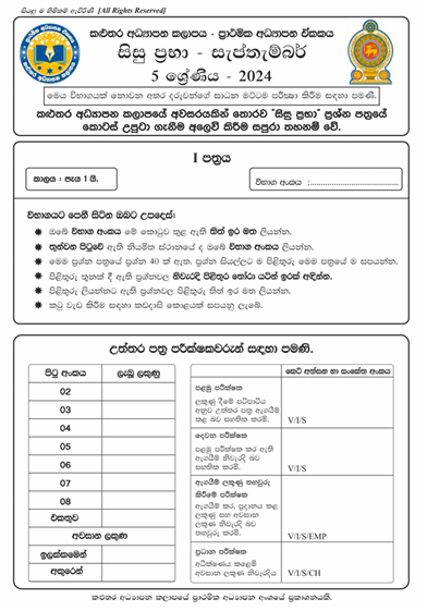 Download Sisu Prabha 2024 (Paper 03) Grade 5 Scholarship Model Paper With Answers , published by the Zonal Education Office Kaluthara . All Grade 5 students can access and download the model paper PDF for free using the link below.